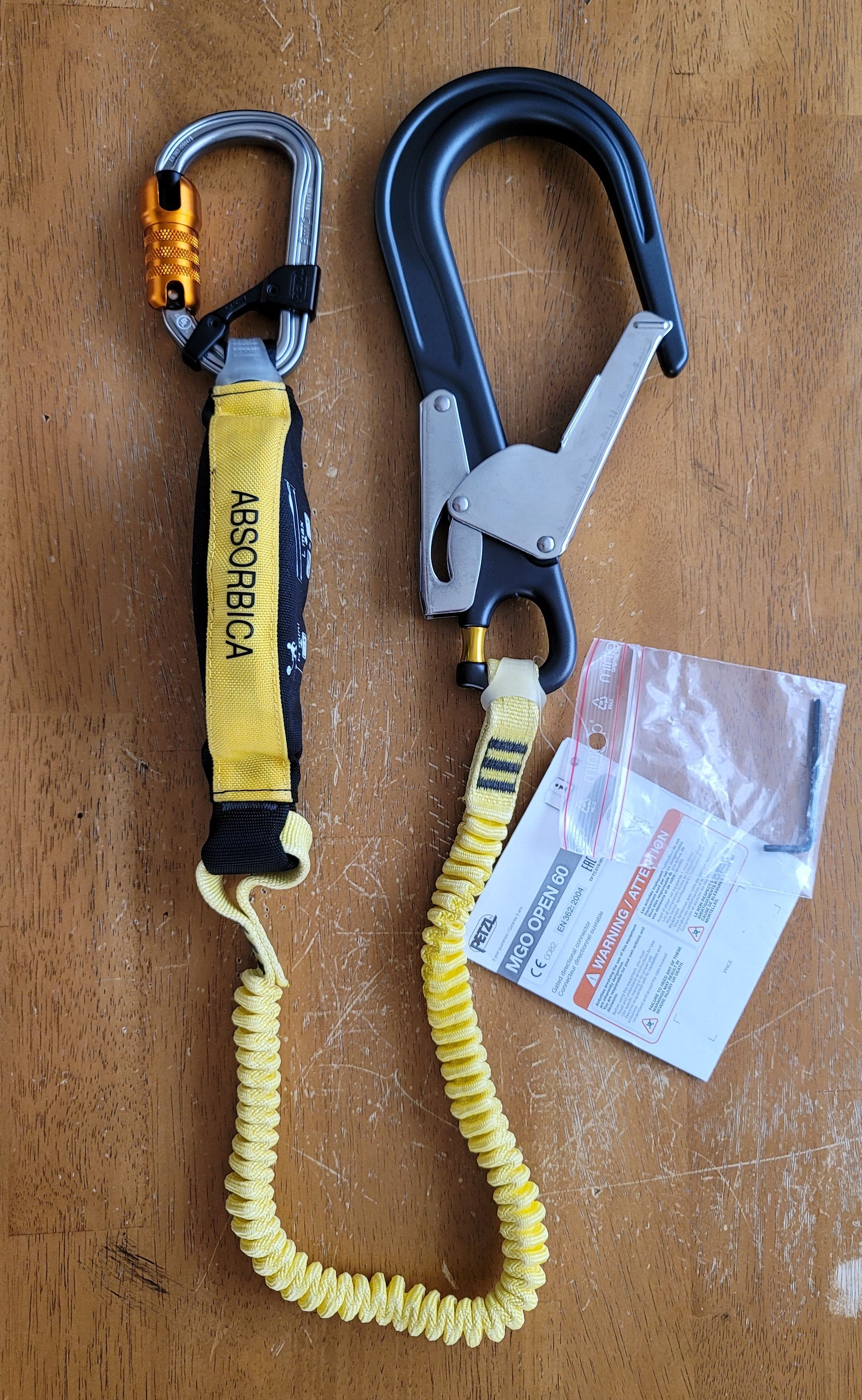 This bundle includes the Absorbica I 150 Flex shock absorbing lanyard with an MGO Open 60 connector ideal for securing to scaffolding and pipe up to 2" diameter. Includes B'md Triact carabiner for attachment to your harness.